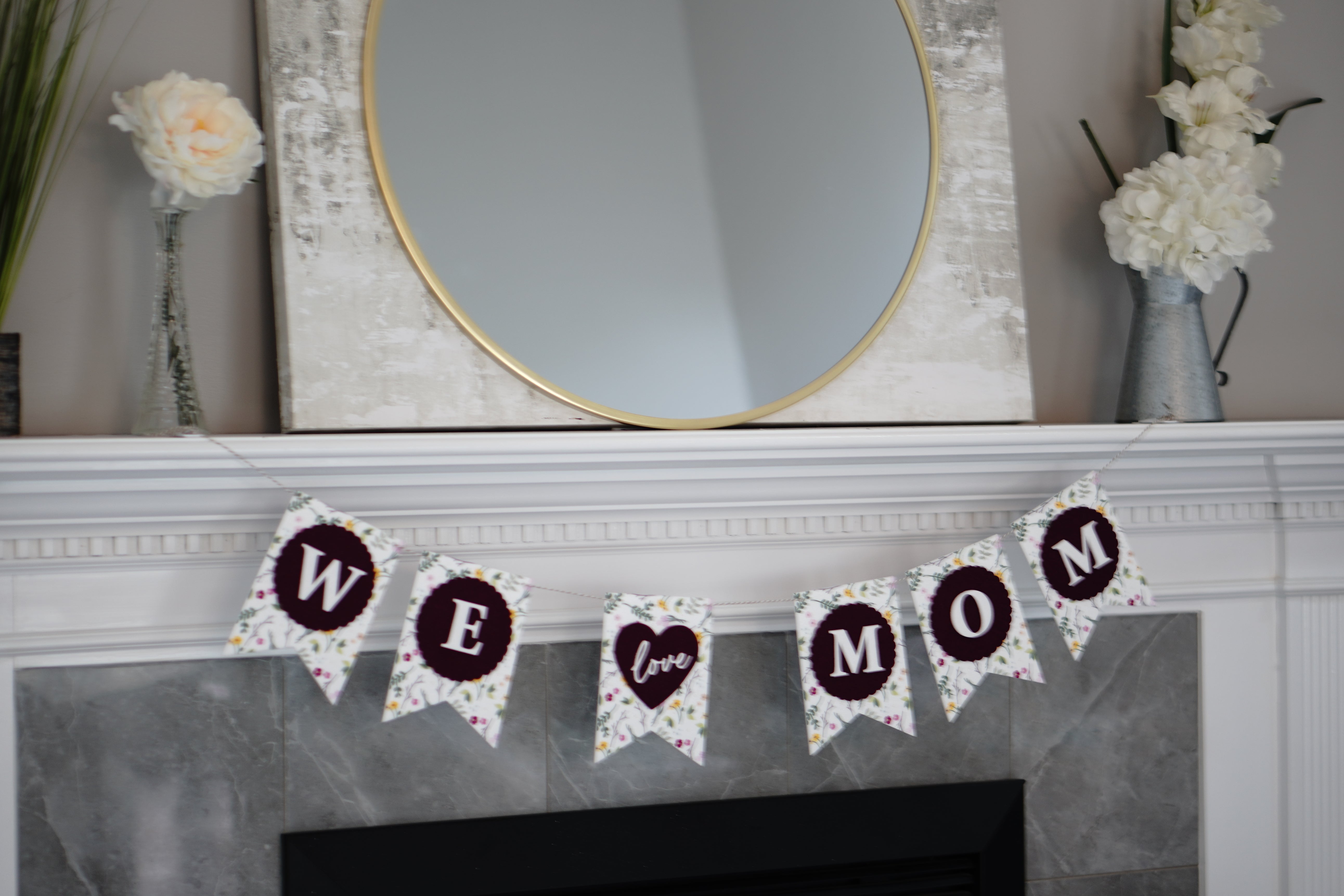 Our MOM banner is made of thick, 3mm felt. With a mix of flowers as a background, the letters and heart are layered on for a fun, dimensional look. Each banner comes with a simple, length of butcher's string. Add your own tulle, ribbon string or rope to personalize it and make it your own.